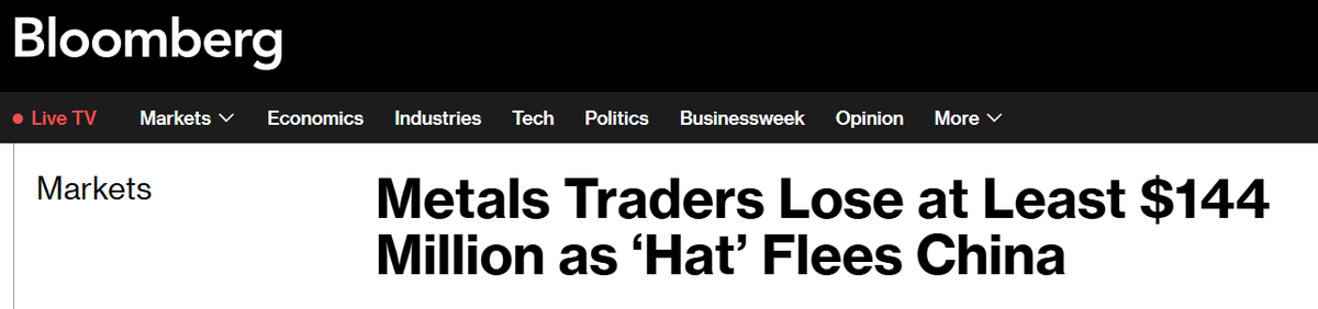 金属交易商Xu Maohua(徐茂华,音译,绰号帽子)是通过规避政府规定的不正当交易来虚增销售额的网络的核心人物。而知情人士称,徐茂华押注白银下跌惨败后,财务状况崩溃,被迫跑路出国。