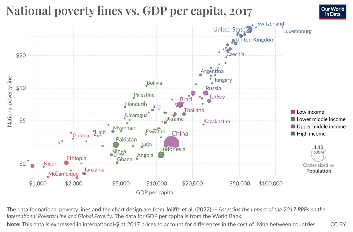 In the US, “poverty” means falling below a high floor. The so called kill line.