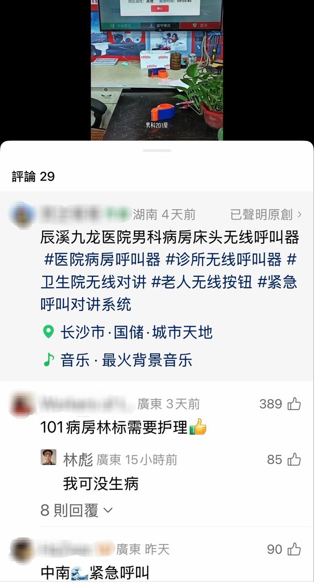 继抖音后,微信视频号评论区也成了冲塔圣地,一个医院病房呼叫器的视频引出林彪和习近平🤪