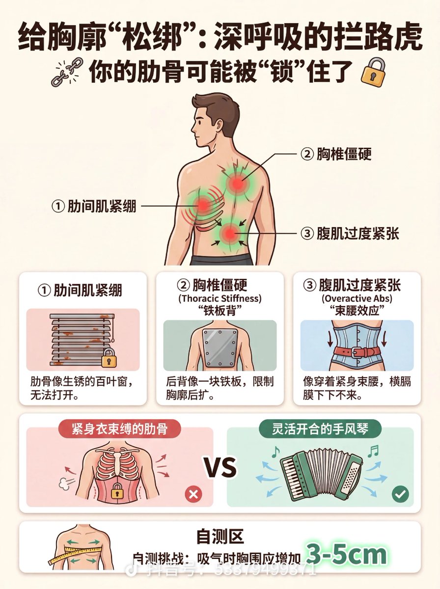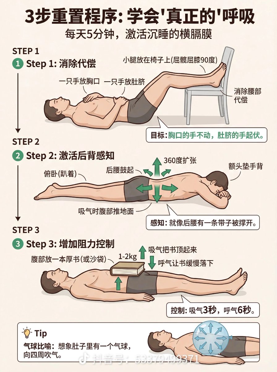人体的确是一个平衡的系统。好多人肩颈疼甚至驼背,居然是呼吸方式引起的。