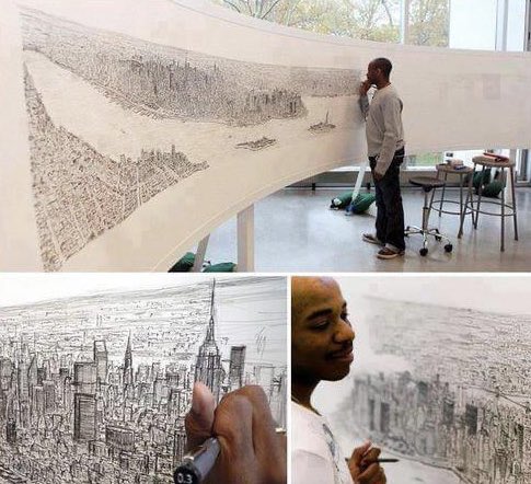 After only a 20 minute helicopter ride over NYC, autistic artist, Stephen Wiltshire was able to draw the New York skyline, in pen, just from his memory.