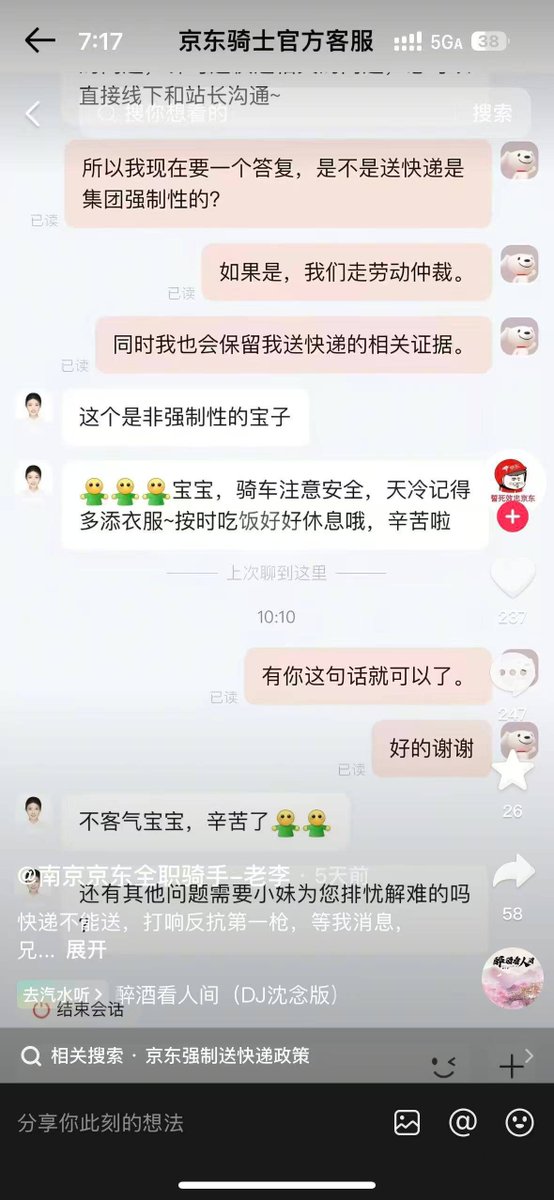 #赛博信访局京东外卖变京东快递网友投稿:今年1月,京东外卖启动了一项“外卖员试岗快递”计划,让全职骑手参与快递配送,京东内部将这一调整称为“共同富裕计划”或“共富项目”,目的是帮骑手提高收入,骑手自愿参与。