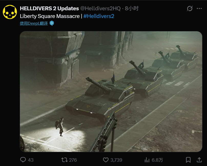 2月4日,在国内广受玩家喜爱的索尼游戏《绝地潜兵2》贴脸开大: