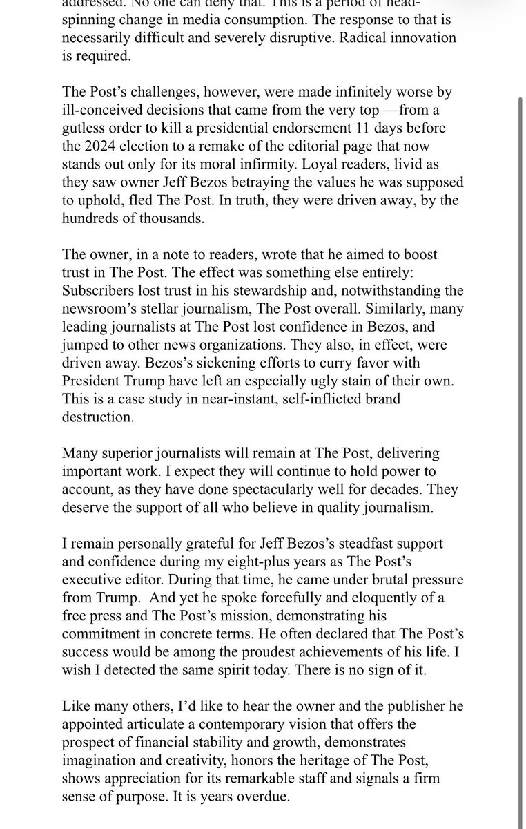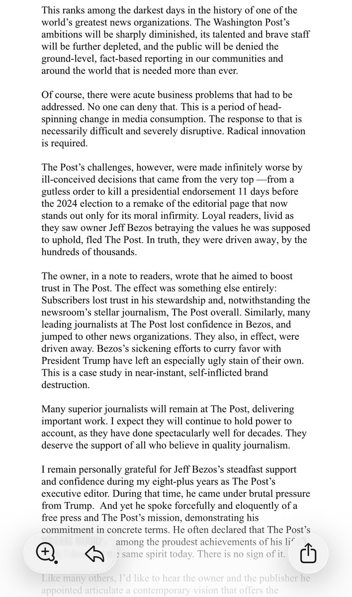 A staggering statement from former Washington Post editor Marty Baron: "This ranks among the darkest days in the history of one of the world's greatest news organizations."
