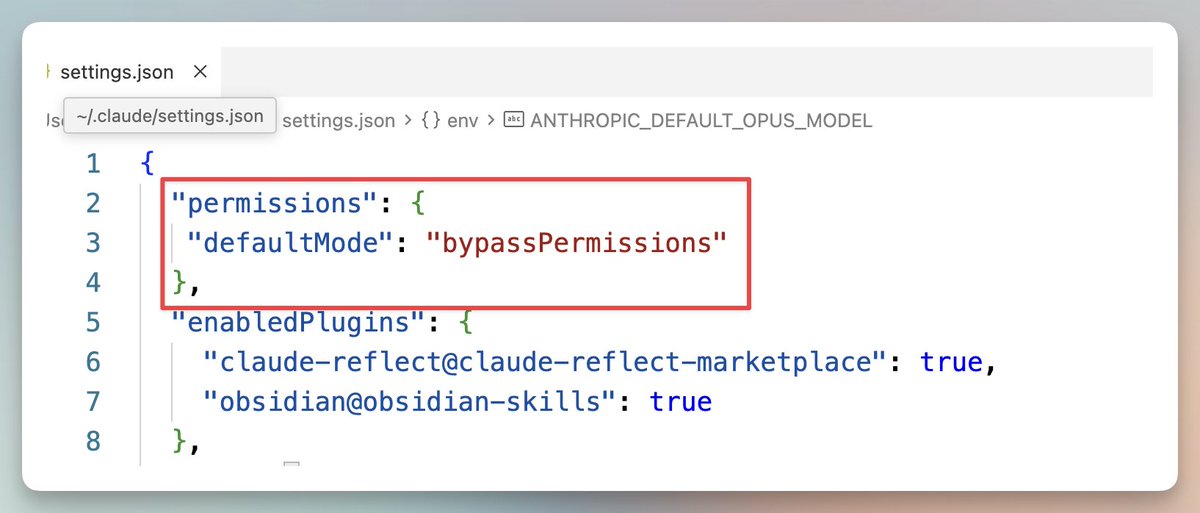 "defaultMode": "bypassPermissions"