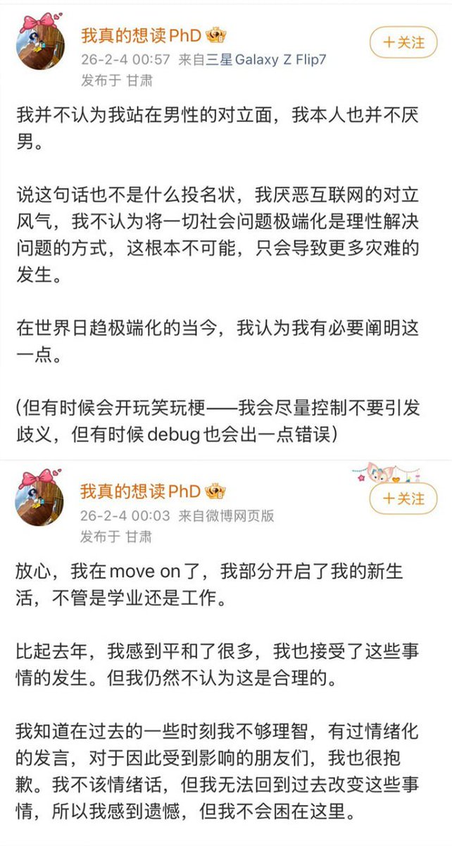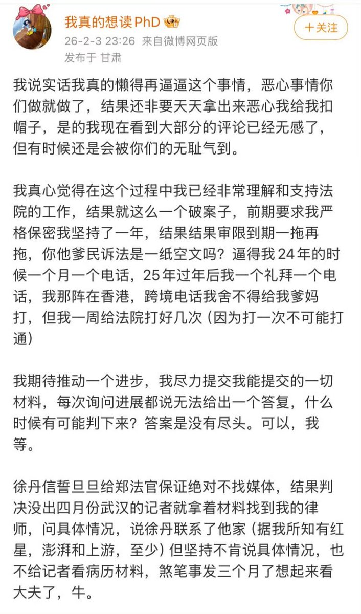 2月4日,武汉大学图书馆事件当事人杨景媛近日深夜连续发言谈论案件。承认自己过去不够理智,有过情绪化的发言。