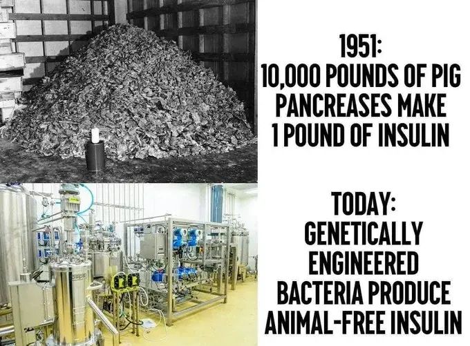 The evolution of technology has made it possible to produce insulin without using animals.