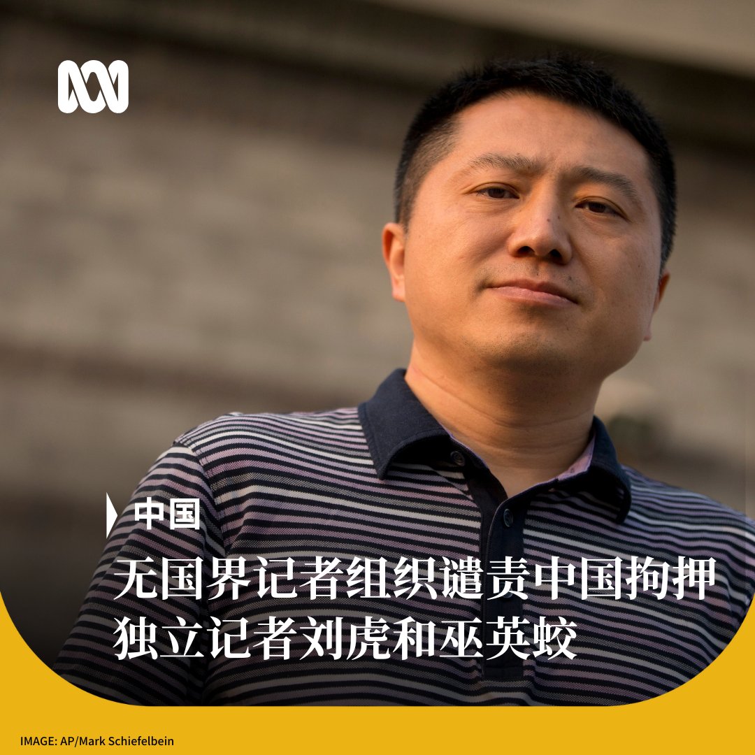 无国界记者组织谴责中国当局拘押独立记者刘虎和巫英蛟。