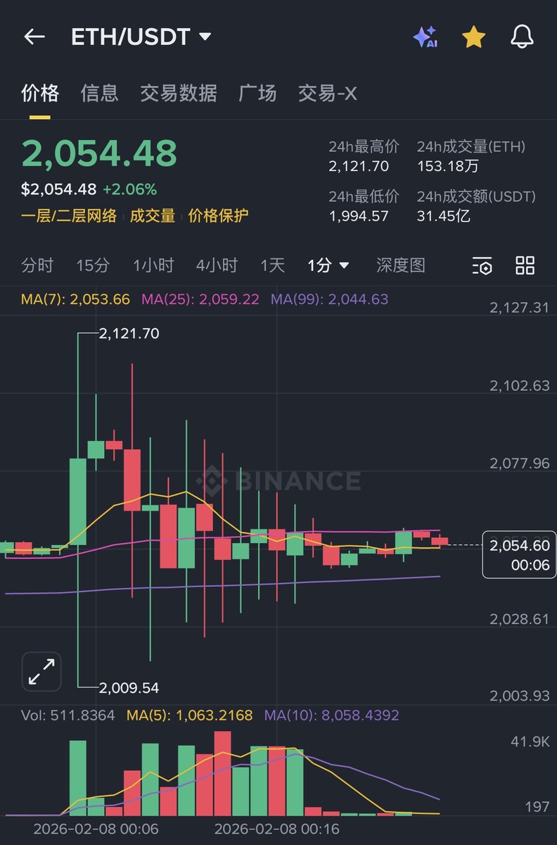 大晚上的,ETH 短时间内上下疯狂扎针,价差达 120 美金🫣