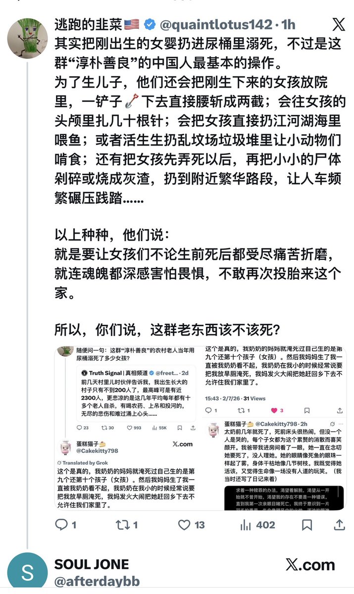 每当我想替那些没有机会开口、没有记录、没有墓碑🪦、 刚刚出生还来不及睁开眼睛开一眼这世界,就被迫去死的女孩子们说句话,就会有很多中国男性跳出来说: