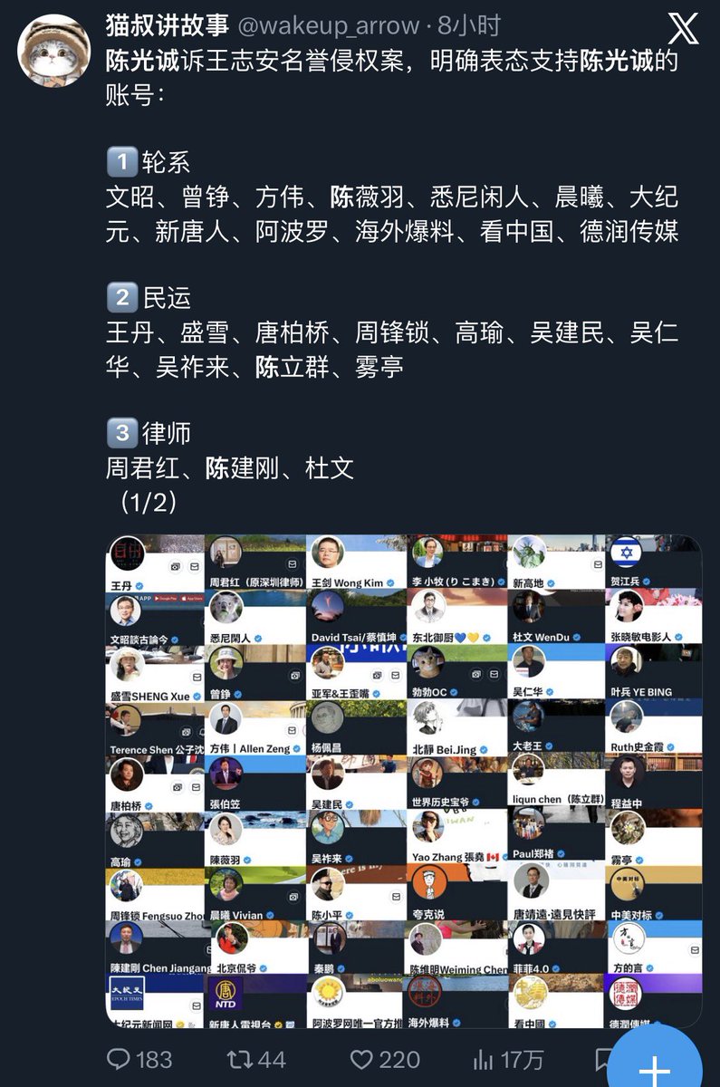 我对陈光诚诉王志安案的基本看法是支持,但我于公对两人的公共言论均无好感,于私跟两人均无过节。陈光诚力挺川普的言论与王志安羞辱异议人士的言论一样令人作呕,一样缺了八辈子大德;但都不违法,都属于公民行使言论自由权利的行为。他们都不是民选官员,也不是参选政客;任何人,包括犯罪分子的生理缺陷均不容他人侮辱贬损,其人格尊严理应受法律保护——民选官员和参选政客除外。