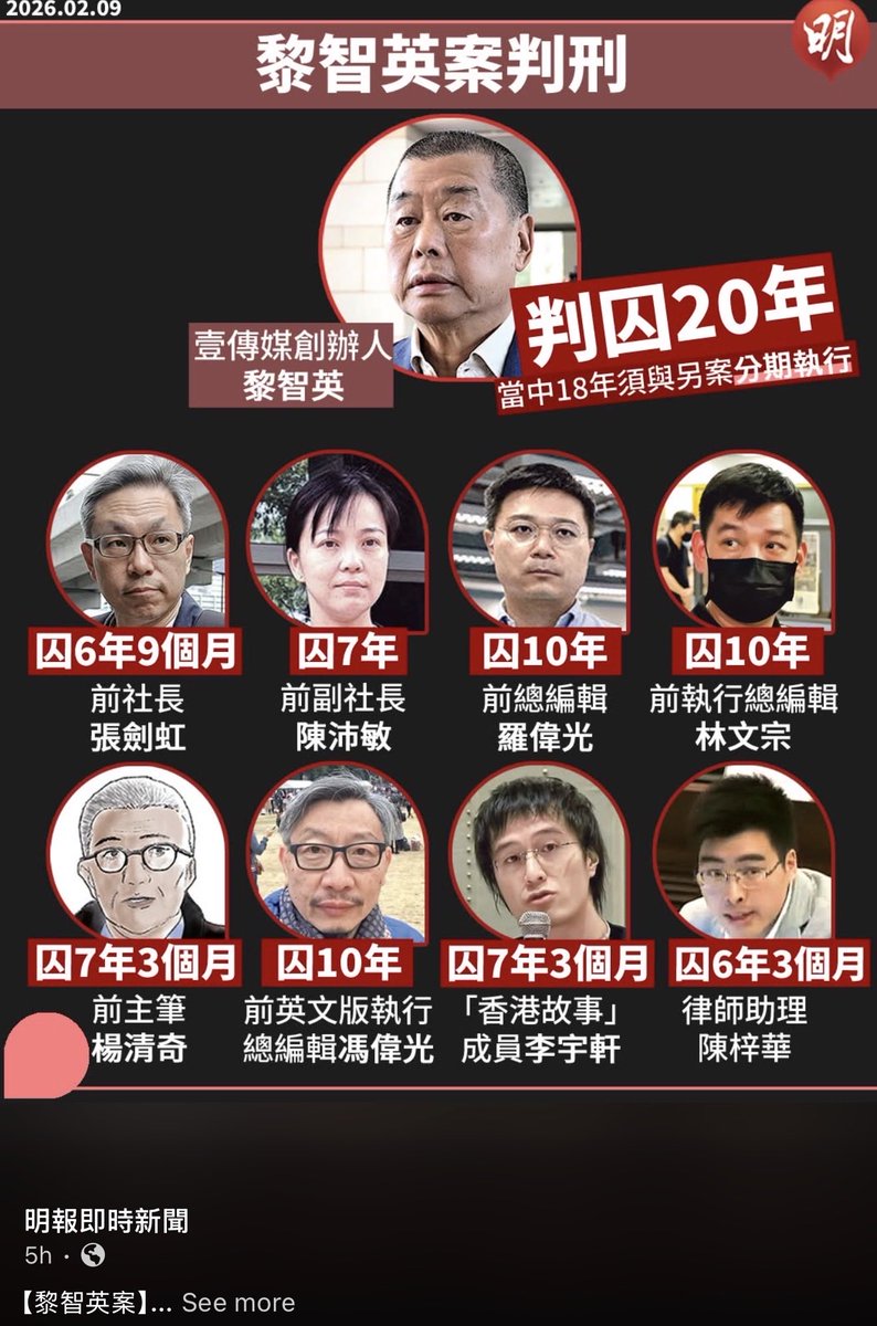 Jimmy Lai’s 20 year sentence, along with long sentence for every one of his media associates, serve as a reminder that the CCP’s model of governance must not prevail.