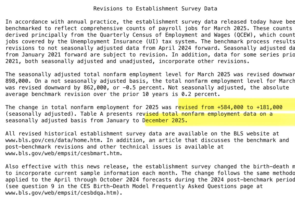 The U.S. economy added just 50,000 jobs in December and a total of only 181,000 for all of 2025, the weakest annual job growth outside a recession since 2003!!