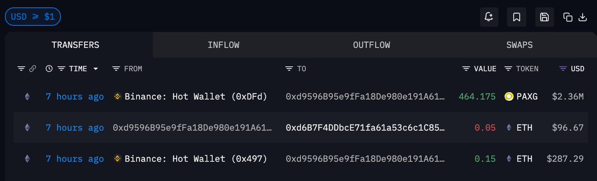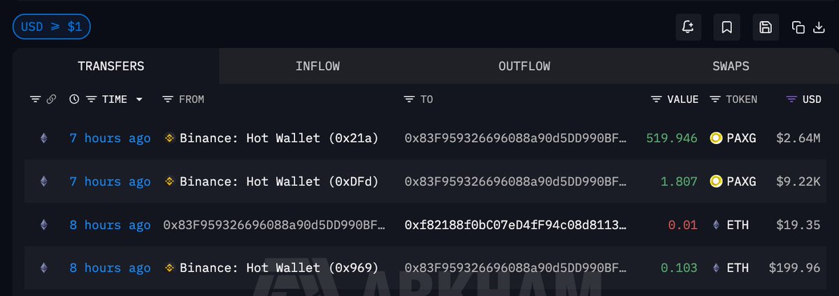 疑似归属于同一人的两个新地址 7 小时前建仓 985.92 枚 $PAXG ,价值 501.4 万美元;两个地址的建仓时间相近,且都向另一个新地址小额转移了 ETH,行为相近
