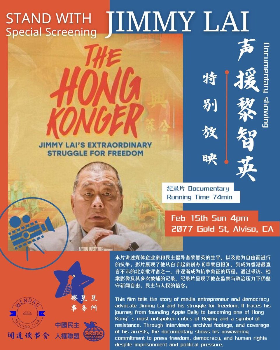 本周日邀请大家参加特别放映:纪录片 The Hongkonger《香港人》一起了解黎智英, 本片讲述黎智英(Jimmy