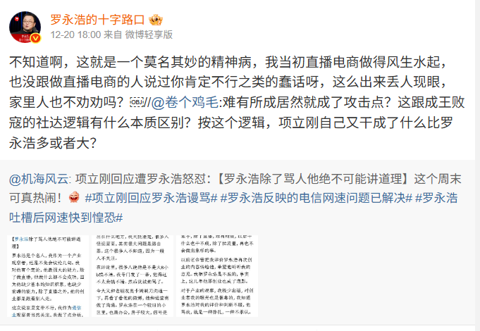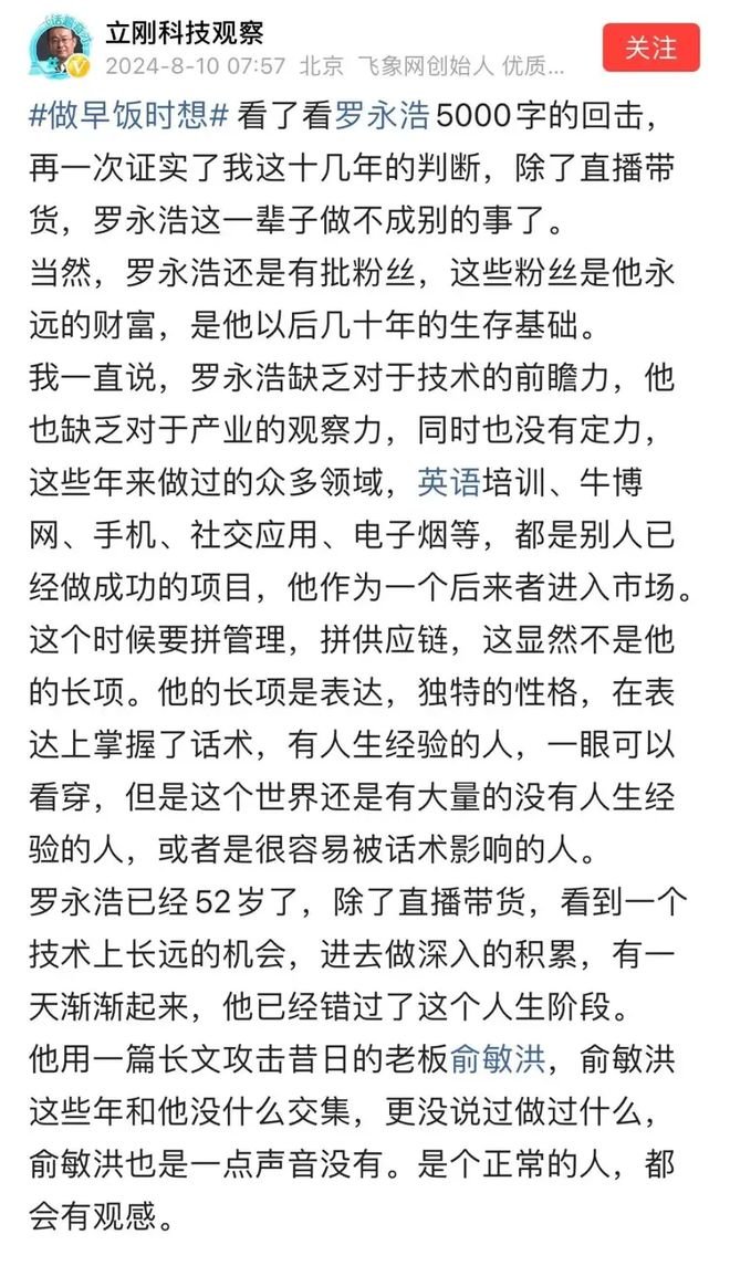 2月13日,博主李隐枫发文:有些人(项立刚) 天天自称“通信行业专家”,可一细想,这个“专家”的标准是不是有点太宽松了? 如果一个从来没在通信企业里干过一天实操工作、没参与过一个项目落地的通信行业媒体人,也能被称为“通信专家”。 那军乐团的首席小号,是不是也可以算“军事家”?毕竟天天在阅兵现场,听到的军用术语比普通人多多了。 说到底,一个一天通信行业实操都没做过的人,如果也能被称为“通信专家”,那和这样的“专家”并列就是对行业认真耕耘的从业人员最大的侮辱。