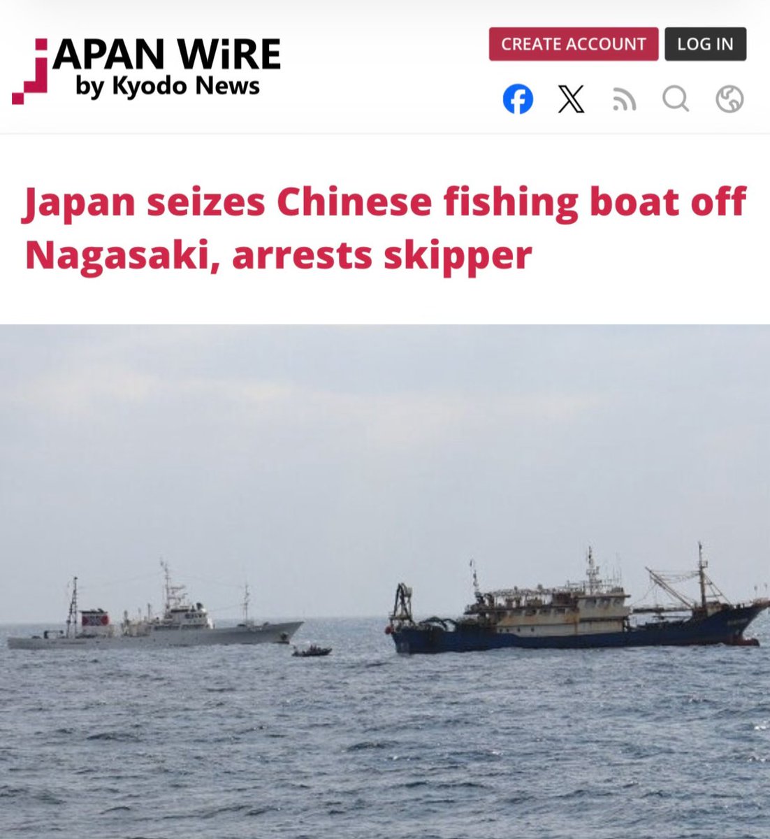🇯🇵 Fisheries Agency seized a 🇨🇳 fishing boat and arrested its skipper — 🇨🇳 national チォンニエンリー (郑念力; Zheng Nianli) — on Feb 12 for defying an order to stop and trying to evade an on-board inspection by a Japanese fisheries control officer while within Japan's exclusive