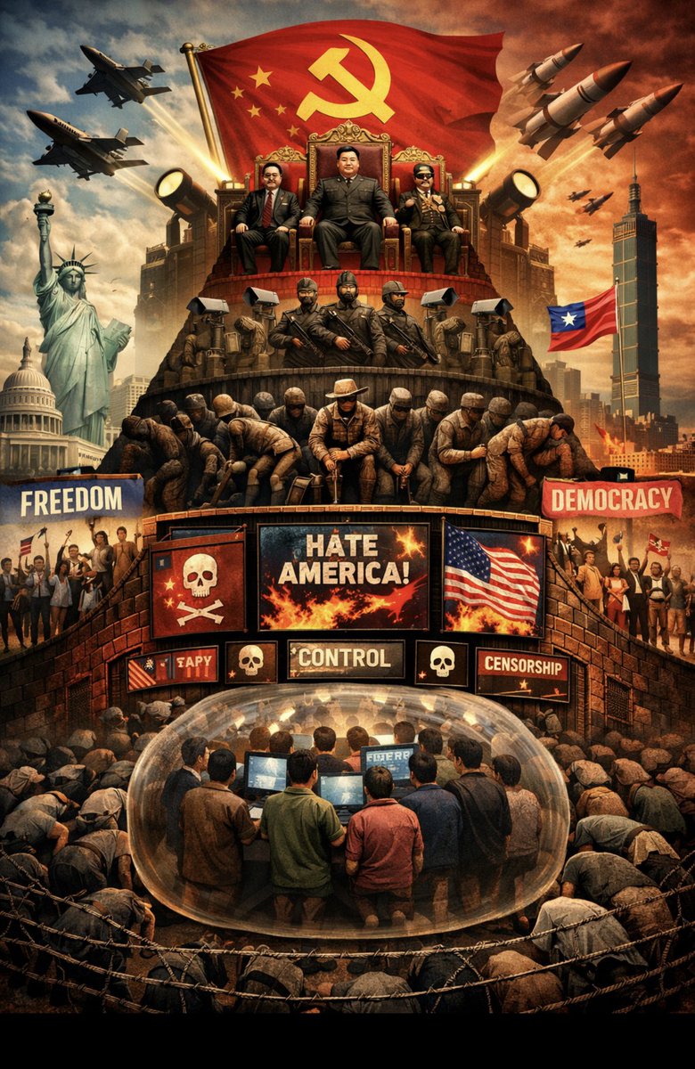 为什么中共与美国和西方格格不入?因为中共是在独裁和奴役金字塔顶端的一小撮集团。民主价值观一旦广泛传播,就会颠覆他们作为“奴隶主”的地位,尤其是在民主的台湾。因此,中共 始终想要进攻台湾,并不是出于领土争端或所谓“统一”,而是因为台湾的民主价值观直接威胁到中共的专制统治!
