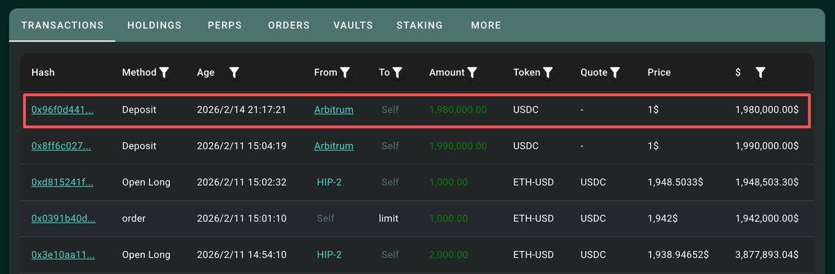 累计做多 10.5 万枚 $ETH 的多军刚才向 Hyperliquid 又充值了 198 万枚 USDC 的保证金