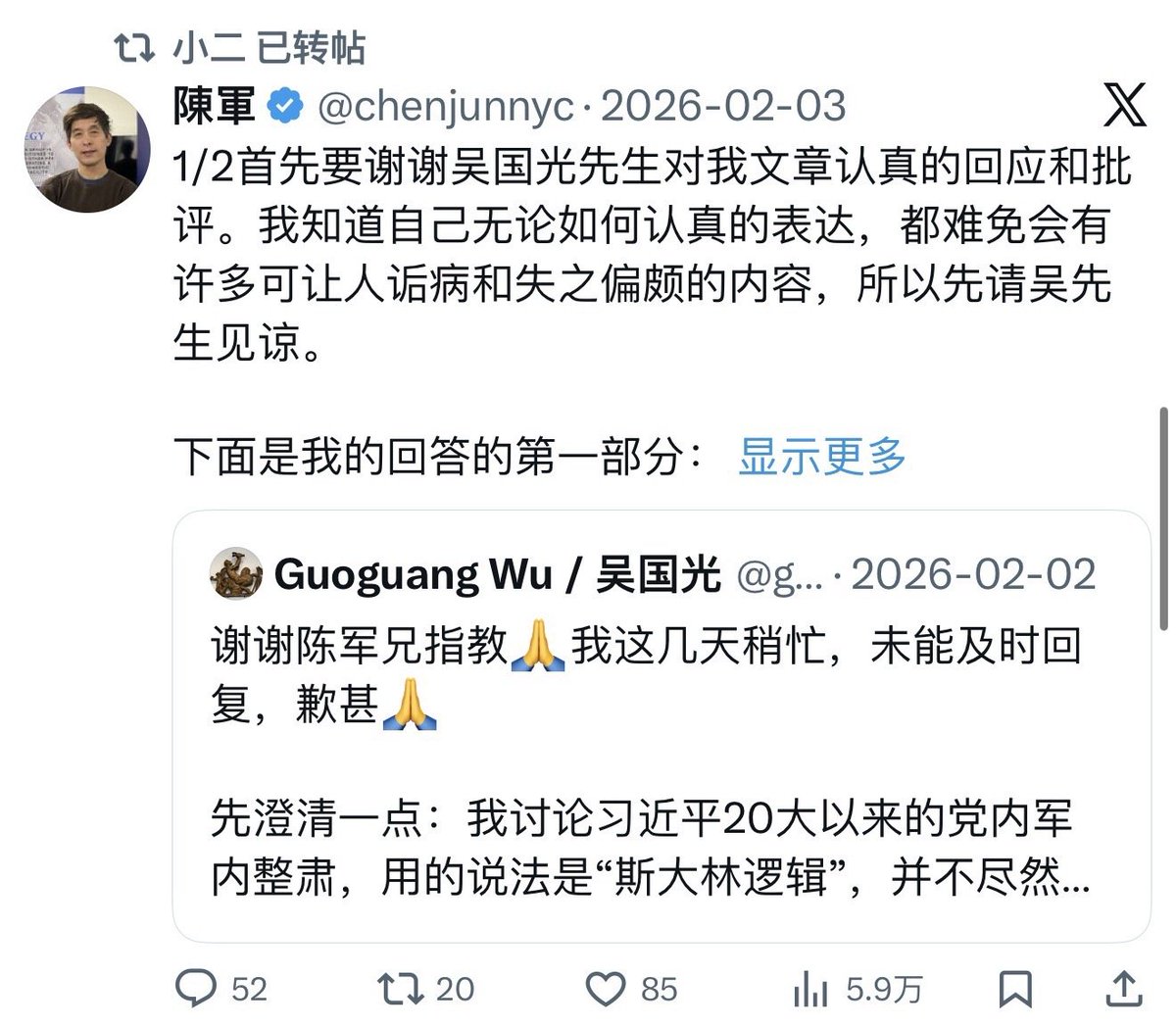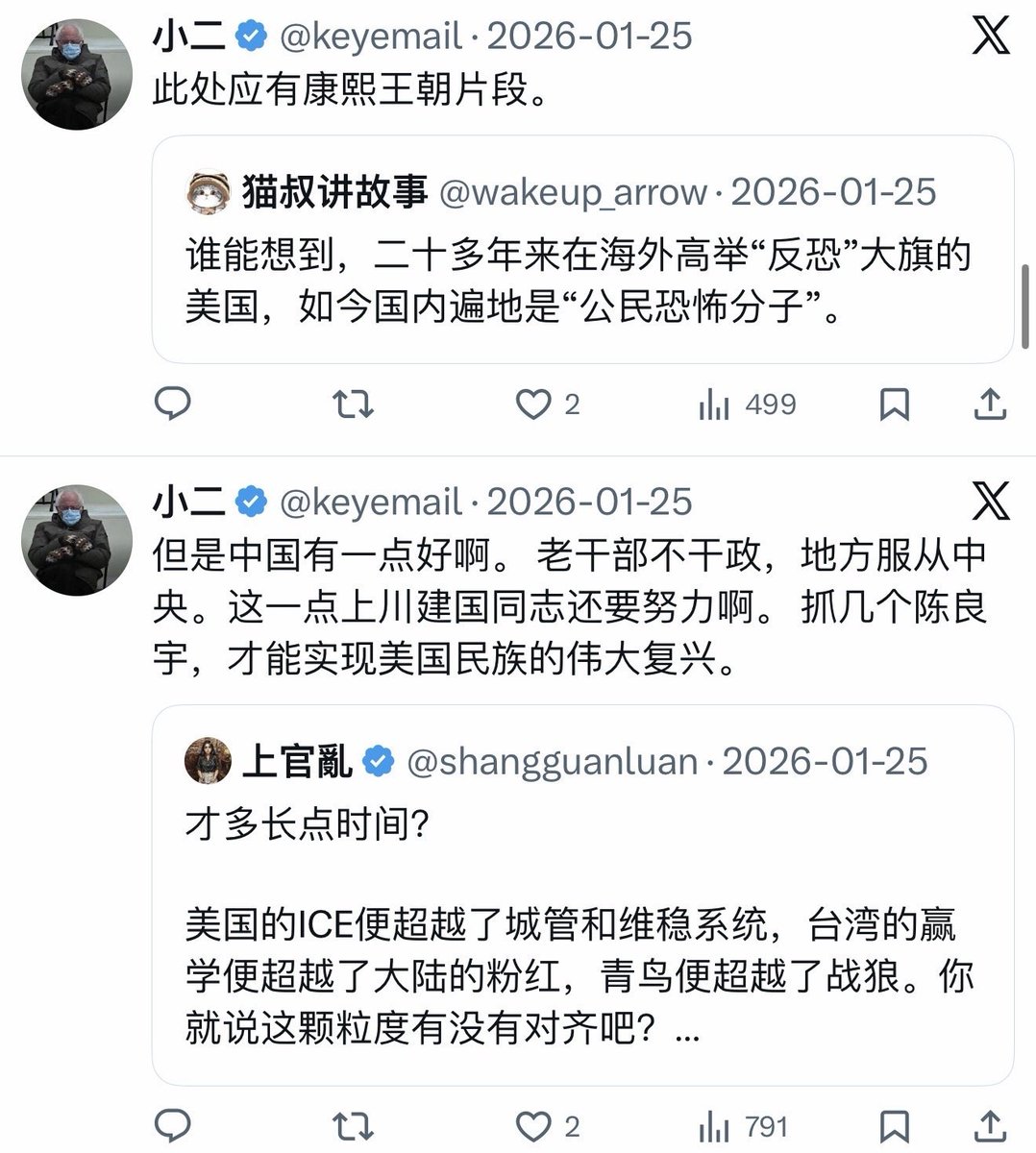 其他大部分时间则是在和北美王路飞,陈军,猫叔,上官乱,北美刘索隆等“理中客”互动,支持他们的发言