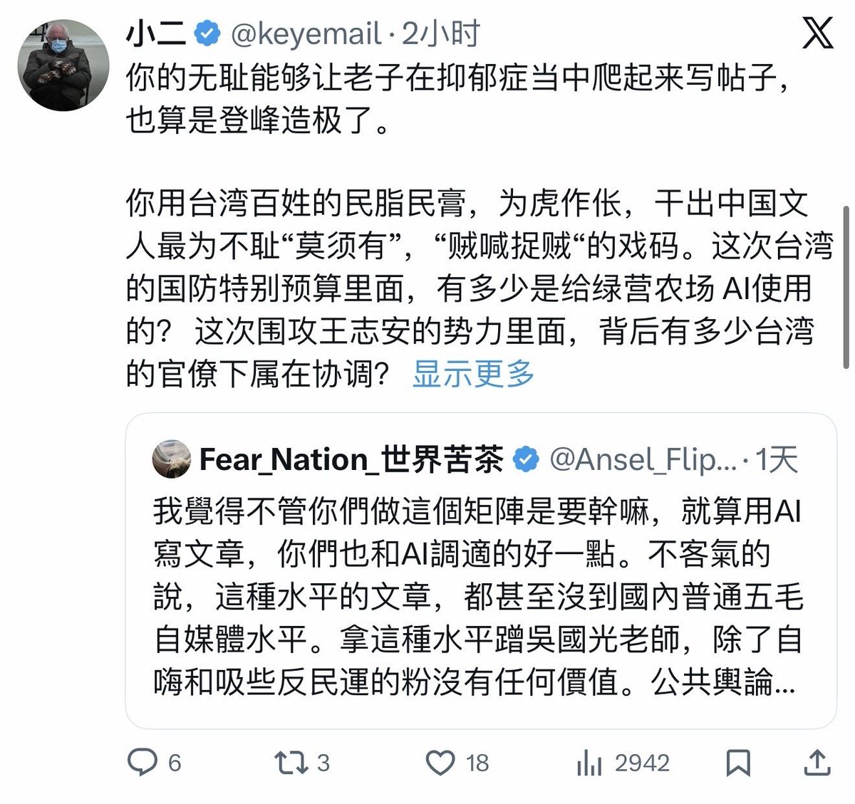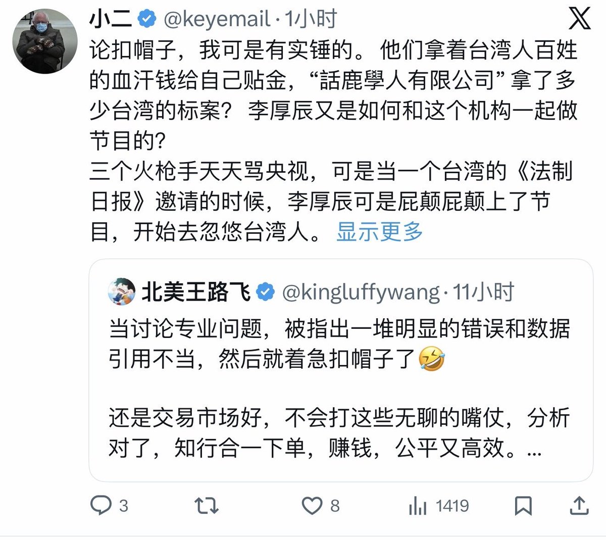 现在推特上被说是大外宣的人挺多