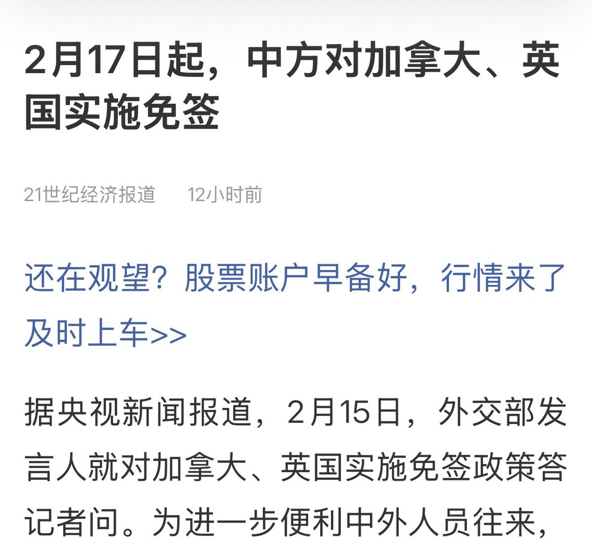 中国对加拿大和英国实行免签