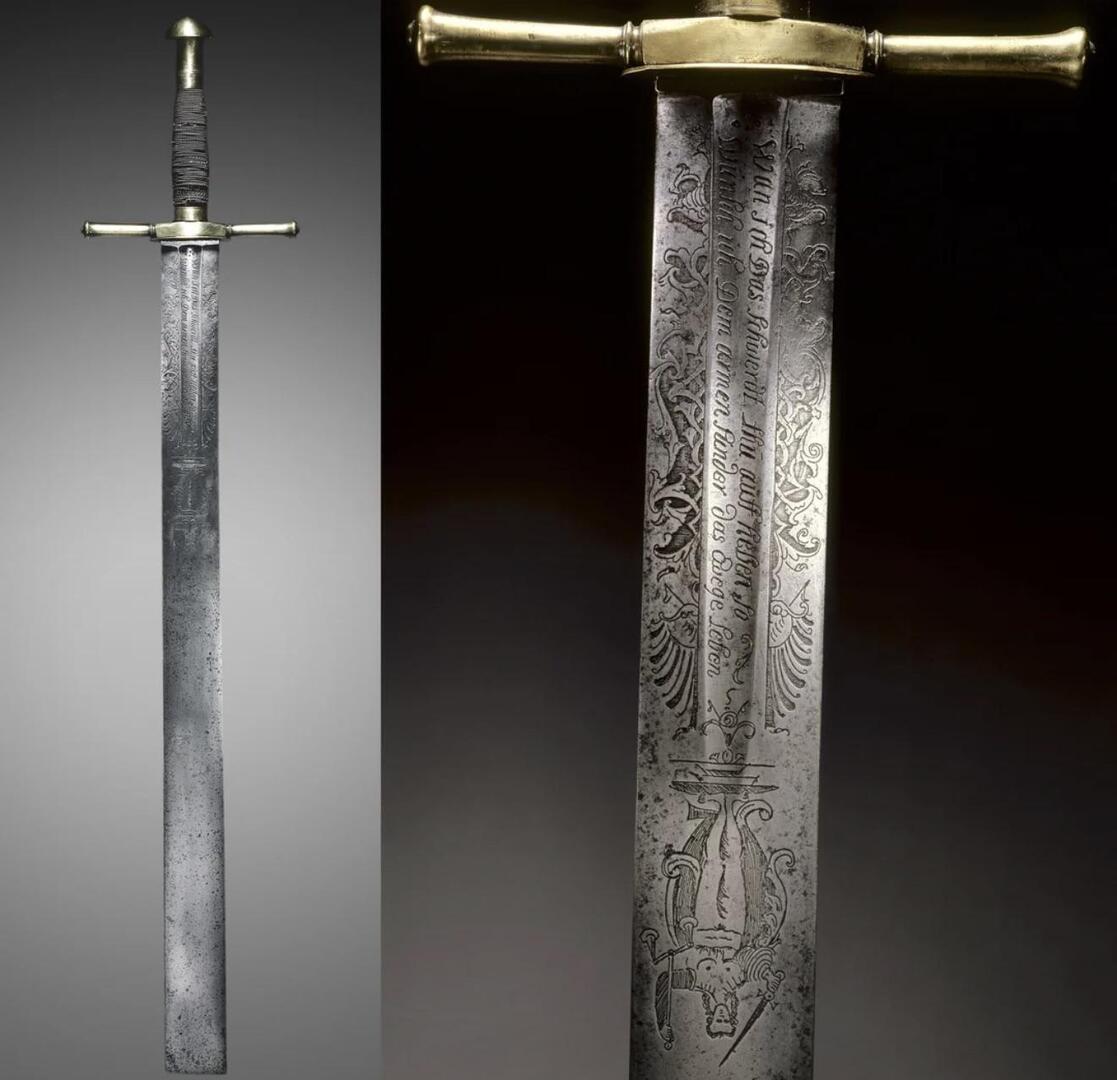 Executioner's sword with inscription that reads "When I raise this sword, so I wish that this poor sinner will receive eternal life". Germany, late 17th century.