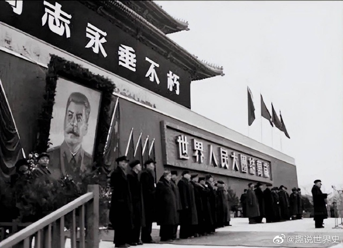 “境外势力”统治中国【举国哀悼斯大林】70年前的今天,1953年3月5日,苏联最高领导人斯大林逝世。这是当时中国举国哀悼的情形。 听闻斯大林病逝消息,毛泽东第一时间亲赴苏联驻华使馆吊唁,并在《人民日报》上发表了亲自撰写悼念文章。 还派出以周恩来为首的党政代表团远赴莫斯科,全程参加斯大