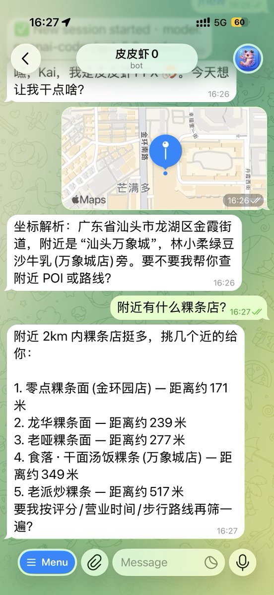 春节在外旅游或回老家可以给你的🦞 OpenClaw(Clawdbot) 安装这个高德地图 Skill,查找一下附近的店,以及查找导航信息对比