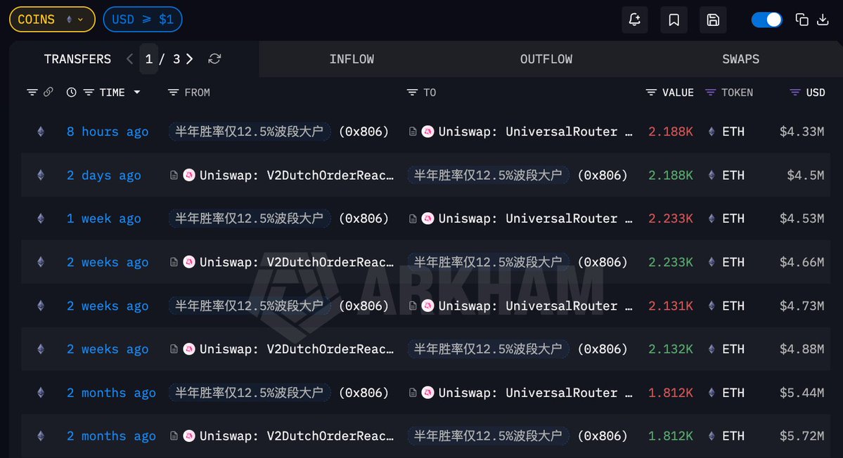 波段五连败了🤦🏻♀️老哥大年夜都不休息的吗 地址 0x806…904aa 8 小时前将 02.13 于 $2055.36 追高买入的 $ETH 全部清仓,卖出价格 $1977.31,再次亏损 17.1 万美元;过去半年他的 9 次波段仅一次盈利,胜率降至 11.1%,累计亏损 143.2 万美元 钱包地址 https://t.co/THQWqdKB1W 本文由 @Gate_zh 赞助 |上 Gate App 抢黄金