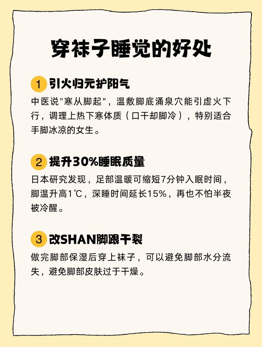 温馨提示:穿袜子睡觉并不适用于所有人,建议根据自己的体感和睡眠环境温度来调适。