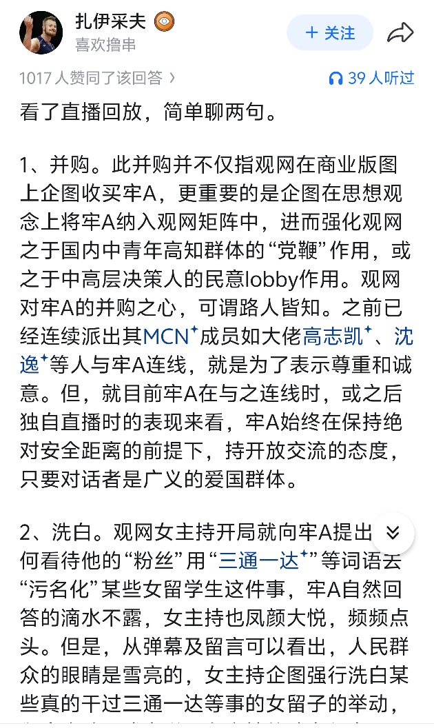 牢a粉认为观察者网是在洗白三通一达,认为询问牢a留学时候具体情况也是在套牢a个人信息🤔🤪🙈