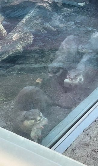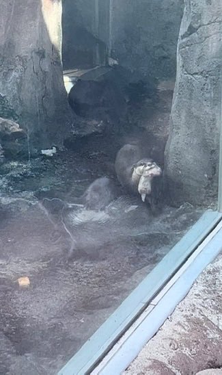An otter became a mother at a Japanese zoo and came out to show visitors her baby.