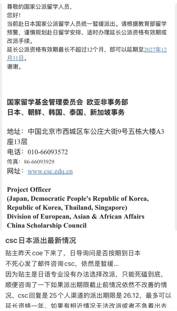 赴日公派留学生被统一暂缓派出
