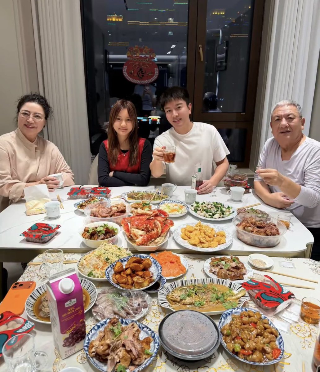 贾乃亮除夕夜晒出团圆照,与父母共度春节,女儿甜馨也陪伴在侧,一家人面对镜头举杯同庆,画面十分暖心