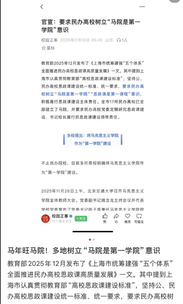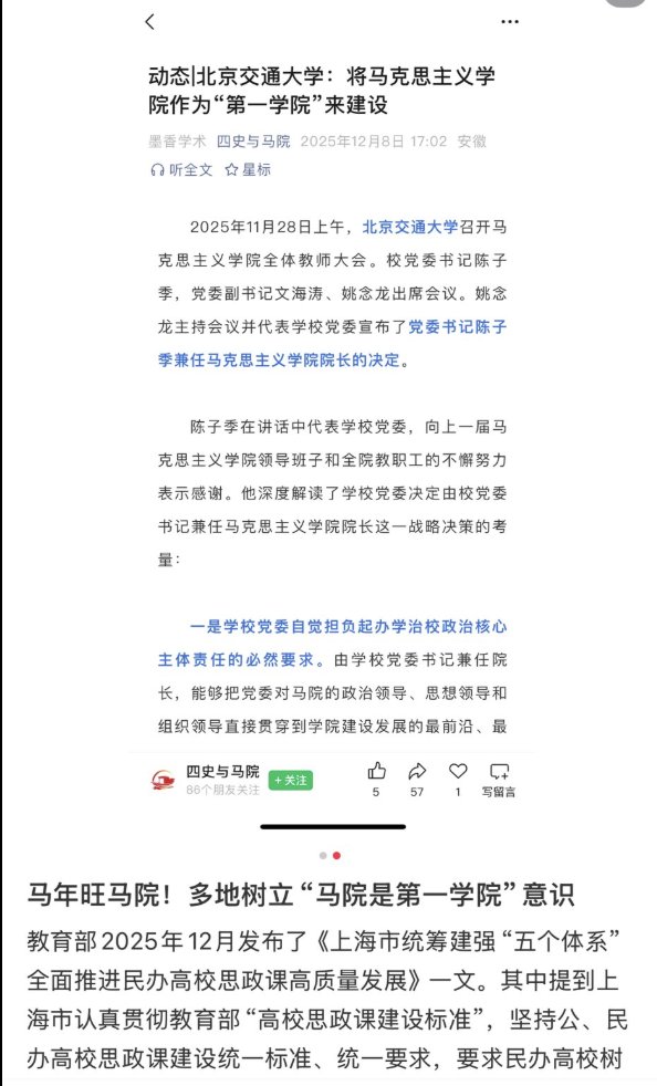 国内多所高校宣布将“马克思主义学院”作为“第一学院”来建设。