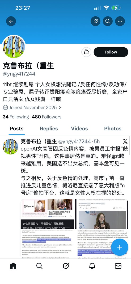 我昨天说推特中文圈是粪坑绝对没说错。推特中文圈的所谓“女权人士”应该是全世界最极端最吓人的。看看这种介绍吧,都不知道到底经历了什么才成的这样