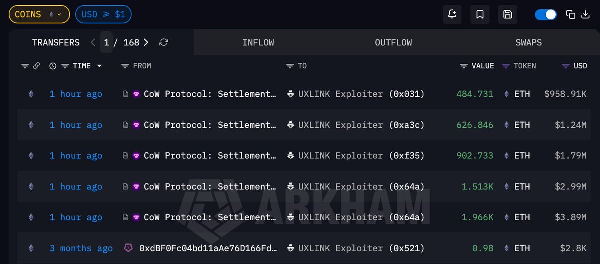 Uxlink 黑客时隔三个月再次活跃,正在用 DAI 买 $ETH 🫠