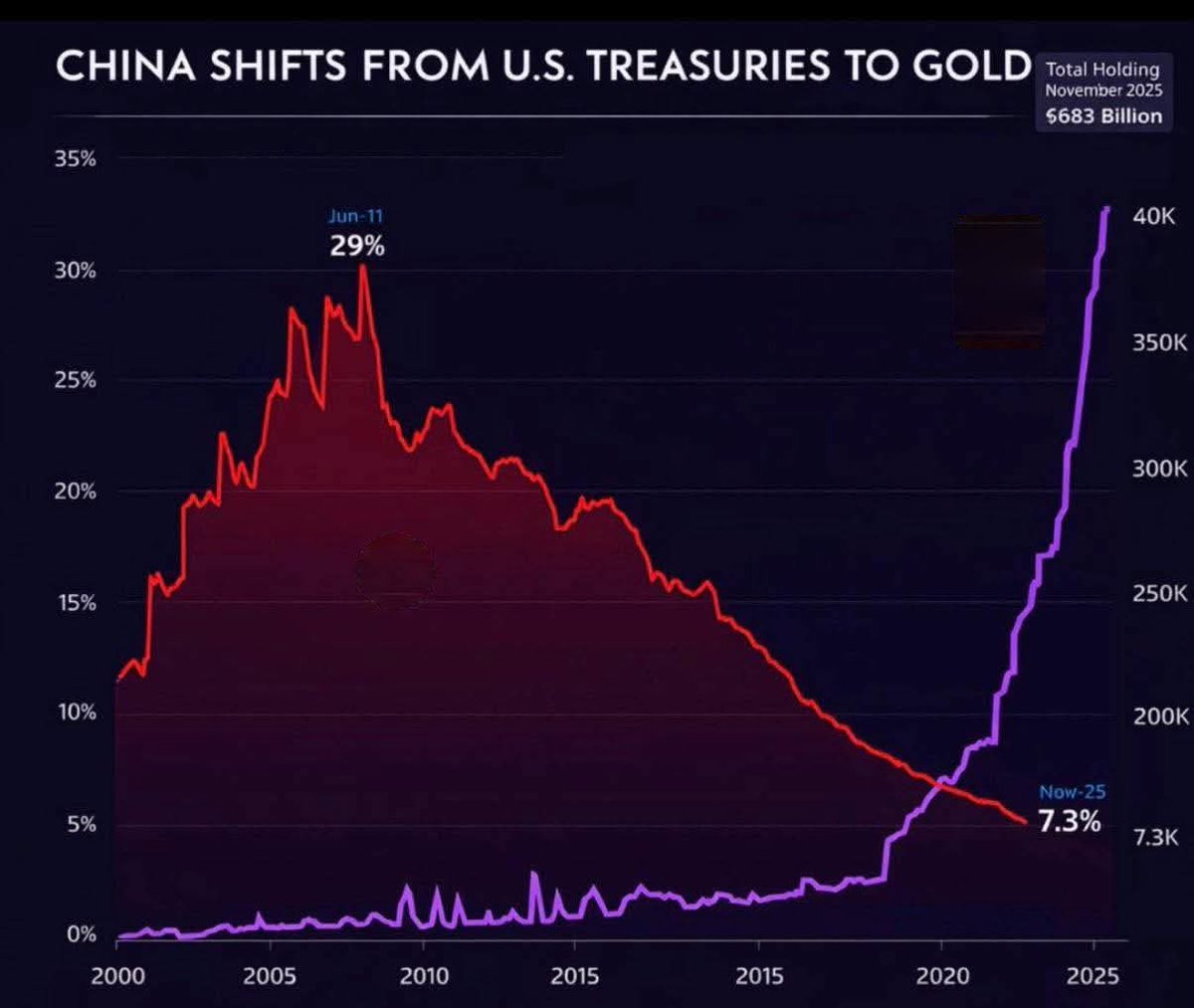 红线代表中国持有的美国国债。