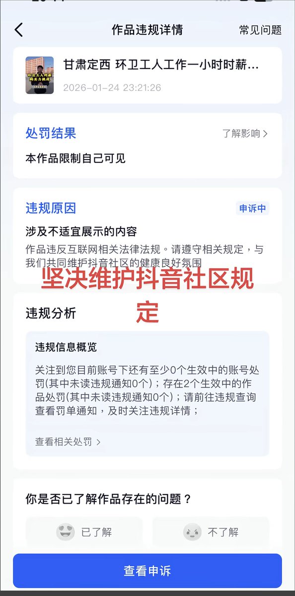 近日,一博主多个街头采访环卫工时薪、以及测试购买力的视频,被平台限制为仅自己可见。