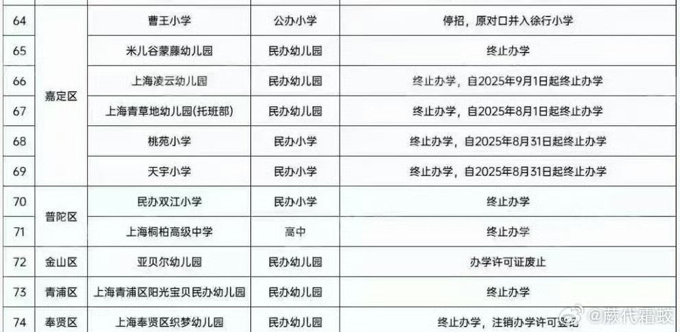 2025年上海停办学校汇总。