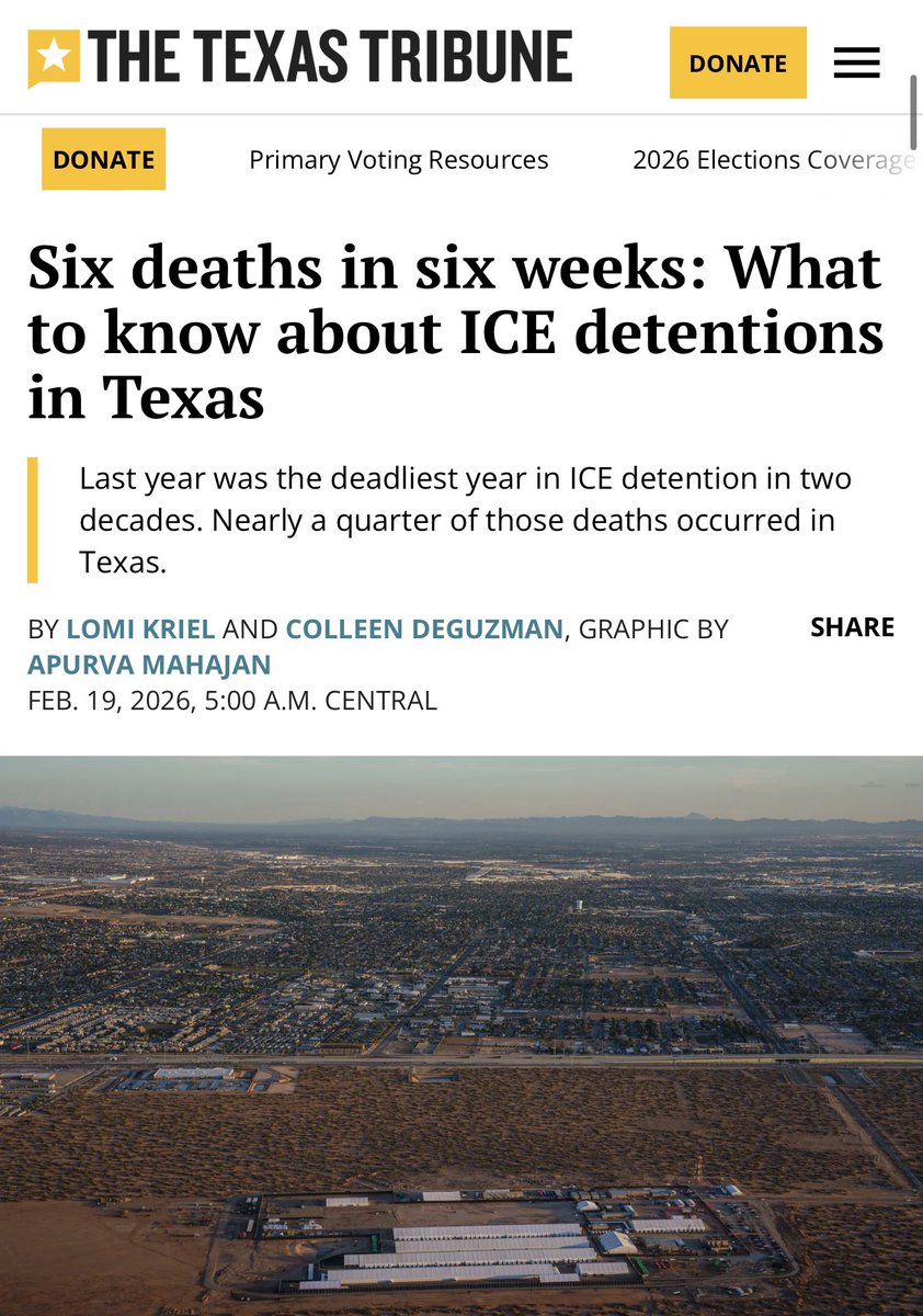 短短六周内, 得克萨斯的ICE拘留中心已有 6 人死亡——这些拘留中心人满为患、人手不足,并且有虐待事件发生。