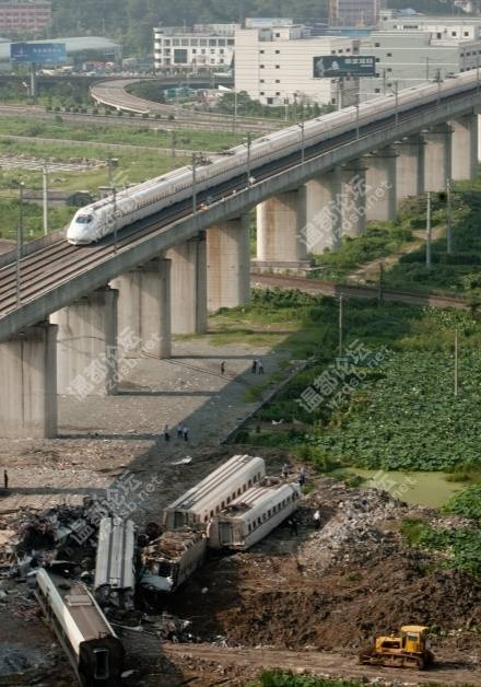 图3:照片很珍贵,得来不易,这个肉饼里能出来几具全尸。这列火车车票几乎告罄,这只是其中一个车厢。还不包括一样的几节和挂在桥上的几节。那么,死亡人数39人的数据能说得过去吗?