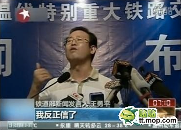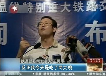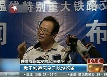 2011年甬台温铁路列车追尾事故发生后,前铁道部宣传部部长、新闻发言人王勇平主持召开相关的新闻发布会。当解释“掩埋车体是为了救援方便”时所说的“至于你信不信,我反正信了”一时间成为中国网络流行语。 在事故的新闻发布会上,他面带笑容,在被问到为什么官方曾宣布车厢内在因已无生命迹象,宣布救援 结束后还会发现一名女童生还者 (项玮伊,灾难当时2岁半)的问题时,王勇平称“这只能说是生命的奇迹”。