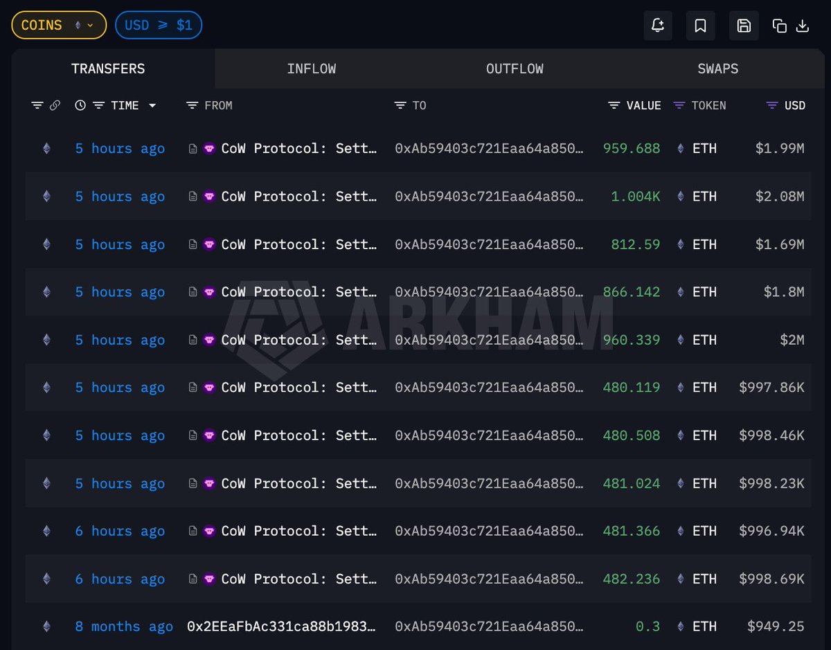 地址 0xAb5…0b767 过去 5 小时以均价 $2075 在链上买入 7008.8 枚 ETH,总价值 1454 万美元;这也是该地址第一次囤积 $ETH ,买入时机正是早上猛烈反弹时