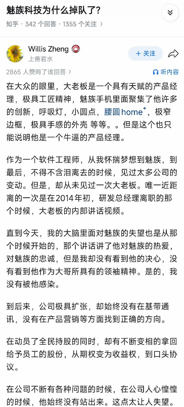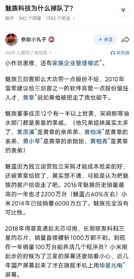 知乎问答:“魅族科技为什么掉队了”