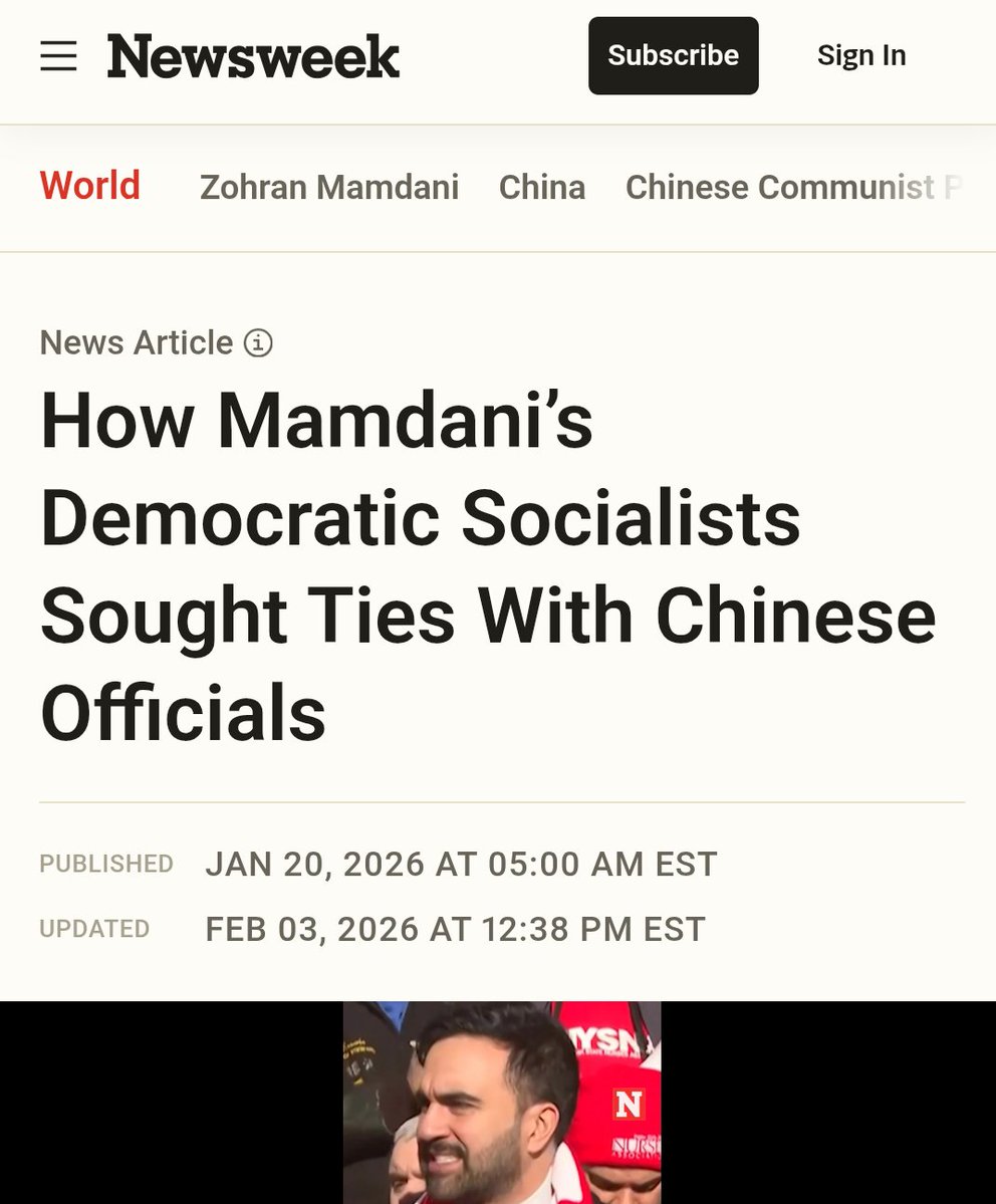 這是一月底二月初出來的新聞,根據《新聞週刊》(Newsweek)取得的大量內部會議紀錄顯示,紐約市市長卓蘭・曼丹尼(Zohran Mamdani)所屬的政治組織——美國民主社會主義者(Democratic Socialists of America, DSA)——一直在與中國共產黨官員培養聯繫,並同意採取親中立場。