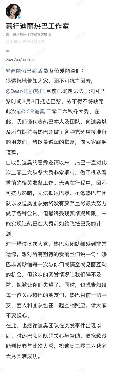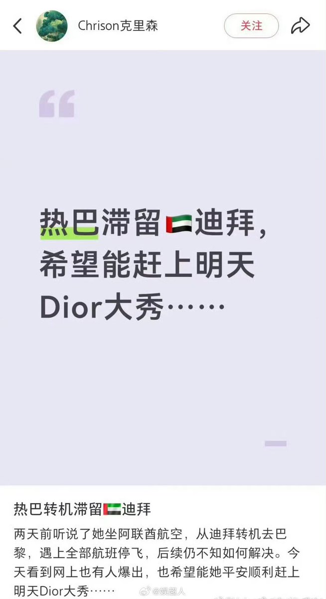 快讯:迪丽热巴潜逃迪拜,缺席明天Dior大秀~~
