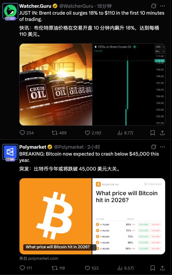 油价狂涨与看跌BTC(更多被当成风险资产)其实是一个逻辑,随着伊朗小电驴在社媒上曝光的增加,外界对美国是否会陷入战争泥潭的担忧也在增加。
