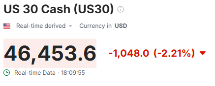 BREAKING: Dow Jones Industrial Average futures open over -1,000 points lower, now down -4,000 points since hitting 50,000 for the first time on February 5th.
